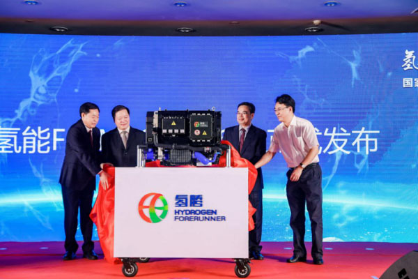 國家電投黨組成員、副總經(jīng)理劉祥民,寧波市市委常委、常務副市長陳仲朝,寧波杭州灣新區(qū)黨工委書記、管委會主任、慈溪市委書記楊勇,中國產(chǎn)促會氫能分會會長魏鎖為產(chǎn)品揭幕。