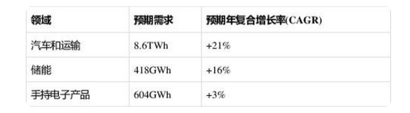 IHS Markit預(yù)計(jì),2020年-2030年間,電池需求將出現(xiàn)如下增長: