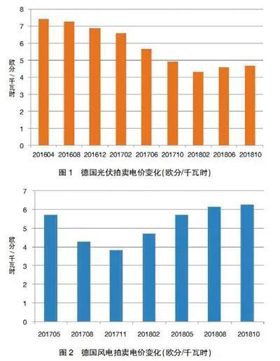 為降低能源轉型成本,德國轉變固定電價機制,對新建機組施行上網(wǎng)電價拍賣機制。在拍賣機制的影響下,德國光伏、風電平均拍賣電價出現(xiàn)變化。