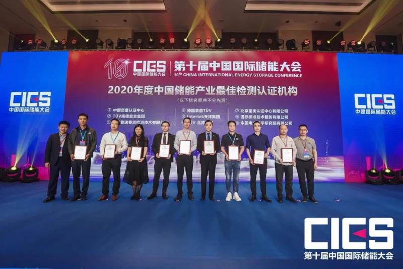 TüV南德榮膺2020年度中國儲(chǔ)能產(chǎn)業(yè)最佳檢測認(rèn)證機(jī)構(gòu)頒獎(jiǎng),TüV南德智慧能源事業(yè)部大中華區(qū)技術(shù)總監(jiān)邱必力先生代表領(lǐng)獎(jiǎng)(左三)