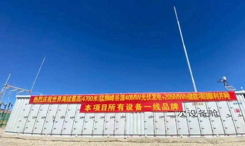 據(jù)介紹,該項目位于西藏日喀則市崗巴縣龍中鄉(xiāng),海拔高度達4700多米,年日照有效時數(shù)在1800h以上。項目由廣東猛獅新能源科技股份有限公司(簡稱猛獅科技)旗下西藏猛獅峰谷源光伏科技有限公司(簡稱西藏猛獅峰谷源)投資,總投資6.9億元人民幣,由中建材新能源工程提供項目EPC總承包服務(wù)。中建材新能源工程前期根據(jù)當(dāng)?shù)赜秒娯摵商攸c以及西藏電網(wǎng)的特殊性,將項目設(shè)計為全儲能配置,采用分塊發(fā)電、集中并網(wǎng)方案。項目規(guī)劃光伏建設(shè)容量40MW,儲能系統(tǒng)配置充電功率40MW、儲能選用磷酸鐵鋰電池,容量193MWh,是目前全球海拔最高、裝機容量最大的光儲一體化項目之一。