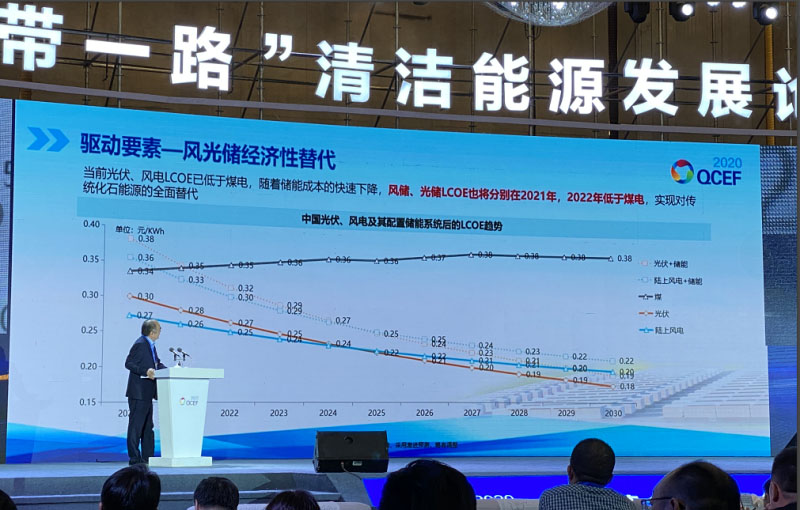 風(fēng)光儲(chǔ)能方面,靠動(dòng)力電池以及整個(gè)產(chǎn)業(yè)的規(guī)模趨勢,硬成本、強(qiáng)行下降,目前下降速度在8%左右,即使如此,我們計(jì)算大概到2022年風(fēng)光儲(chǔ)能的成本也將低于煤電,而且風(fēng)光儲(chǔ)能的LCOE下降速度比較快。所以想要提前5年實(shí)現(xiàn)我們的碳減排與碳中和目標(biāo),主要還是靠光伏、風(fēng)電、儲(chǔ)能這幾個(gè)生態(tài)體系的建立。