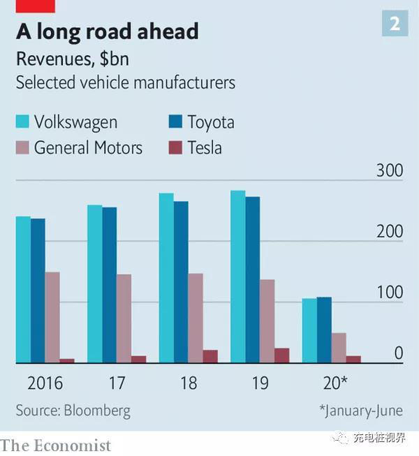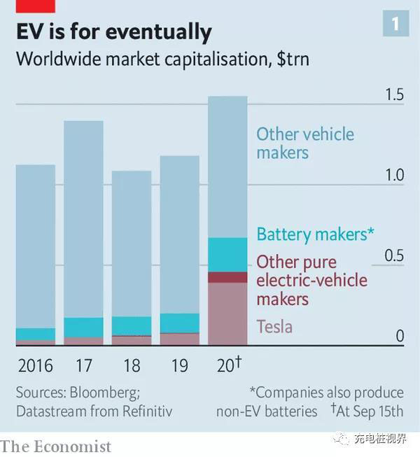 目前,純電動汽車制造商的總市值已超過4000億美元。加上汽車電池生產(chǎn)商,每年產(chǎn)能不到40萬輛的電動汽車行業(yè)價值至少為6700億美元,其中還不包括鋰礦和其他提供電池原材料的礦商。這幾乎是傳統(tǒng)汽車制造商市值的五分之三。相比之下,傳統(tǒng)汽車制造商每年生產(chǎn)8600萬輛幾乎都是汽油驅動的汽車。我們大可以將其稱之為特斯拉異象(Teslaverse)。