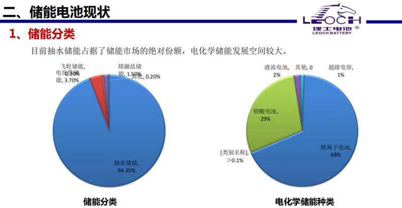 這是我們儲能電池現(xiàn)狀。抽水儲能占的比例是94%,電化學(xué)儲能站的比例比較小,但另外一個(gè)方向也說明電化學(xué)儲能發(fā)展空間很大。右邊的圖,鋰電池在電化學(xué)儲能里的比例越來越高,我這個(gè)還是2018年的數(shù)據(jù),上午劉秘書長講鋰電池目前達(dá)到80%多,鉛酸還在下降。