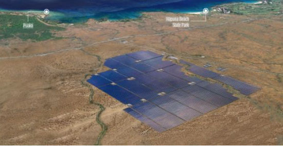 ENGIE EPS公司在最近的夏威夷招標(biāo)項(xiàng)目中標(biāo)。該公司計(jì)劃部署的一個(gè)裝機(jī)容量為60MW太陽(yáng)能發(fā)電場(chǎng)和240MWh電池儲(chǔ)能系統(tǒng)的渲染圖