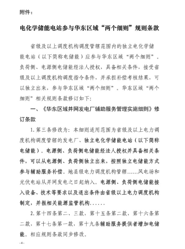 電化學(xué)儲能電站參與華東區(qū)域“兩個細(xì)則”規(guī)則條款
