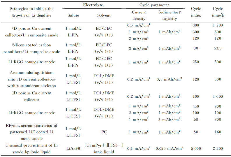 表1 近幾年鋰金屬負極材料的循環(huán)性能對比