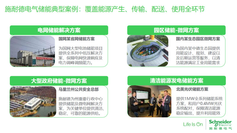 施耐德電氣可以幫助儲(chǔ)能行業(yè)做很多事情,無(wú)論是發(fā)電端、變電、輸電到最后的用電,都有很多案例。例如我們給國(guó)網(wǎng)儲(chǔ)能的方案,幫助他們儲(chǔ)能設(shè)備從元器件、設(shè)備到第二層系統(tǒng)實(shí)現(xiàn)了更高可靠有效的應(yīng)用。同樣,我們?cè)趫@區(qū)微網(wǎng)用電、光伏項(xiàng)目等等場(chǎng)合都有很好的應(yīng)用,幫助客戶實(shí)現(xiàn)了更高的投資回報(bào)率。