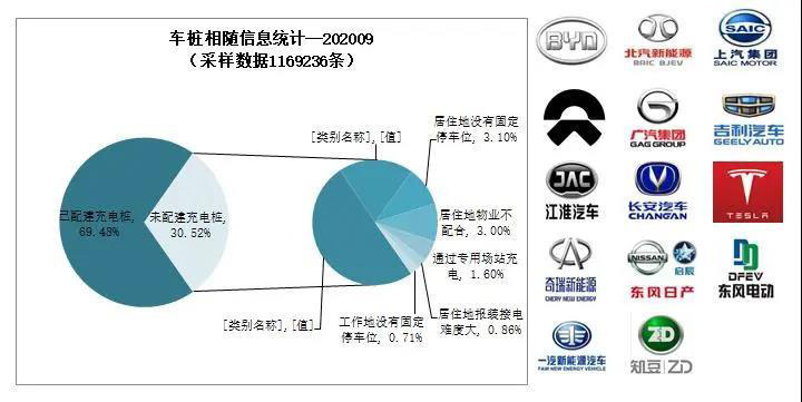 截至2020年9月,通過聯(lián)盟成員內(nèi)整車企業(yè)采樣約116.9萬輛車的車樁相隨信息,其中建設(shè)安裝私人類充電樁81.2萬臺,未配建私人樁數(shù)量35.7 萬臺,整體未配建率30.5%。