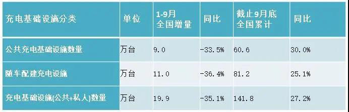2020年1-9月,充電基礎(chǔ)設(shè)施增量為19.9萬臺,雖然近兩個月增量有所回升,但由于公共充電基礎(chǔ)設(shè)施上半年增量不高,且隨車配建充電設(shè)施依然較少,同比依然下降35.1%。