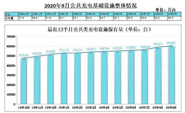 截至今年9月,聯(lián)盟內(nèi)成員單位總計上報公共類充電樁60.6萬臺,其中交流充電樁35.0萬臺、直流充電樁25.5萬臺、交直流一體充電樁488臺。從2019年10月到2020年9月,月均新增公共類充電樁約1.2萬臺。