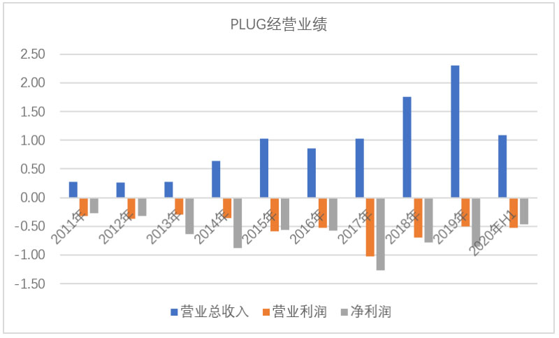 他們以叉車為切入點也正是遵循了局部市場商業(yè)閉環(huán)的商業(yè)邏輯。公司2020年中報稱:“Plug Power已經(jīng)部署了超過34000個燃料電池系統(tǒng),并且已經(jīng)成為最大的液態(tài)氫買家,在北美建立并運營了一個氫氣網(wǎng)絡?!蹦壳?,PLUG也還處于虧損中,但隨著成本氫燃料電池成本和氫氣的成本下降,公司前景值得期待。