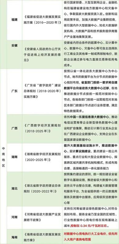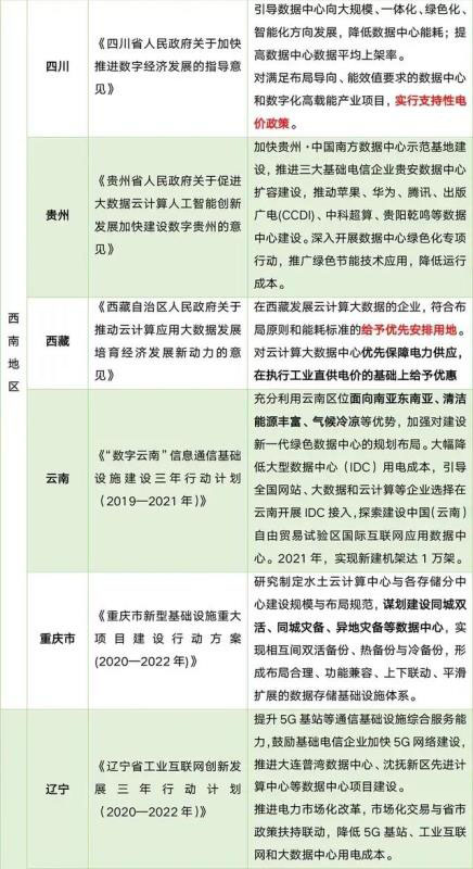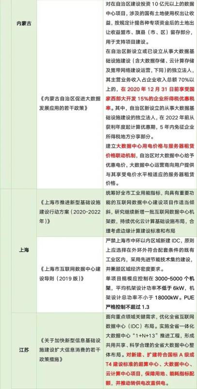 國內(nèi)部分?。▍^(qū)、市)數(shù)據(jù)中心相關政策列表