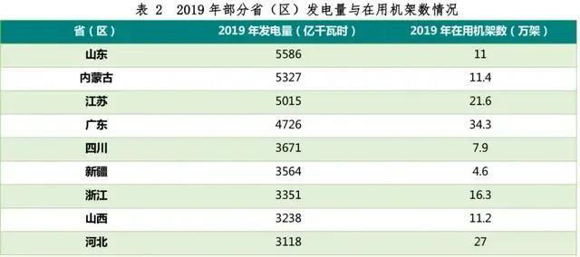 表2 2019年部分?。▍^(qū))發(fā)電量與在用機架數(shù)情況