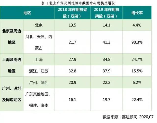 表1 北上廣深及周邊城市數(shù)據(jù)中心規(guī)模及增長