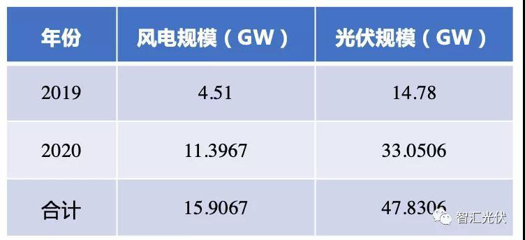 在國家能源局公示的2019、2020年兩年的平價上網(wǎng)項目名單中,光伏總規(guī)模高達47.8GW,遠遠超過了風電,如下表所示