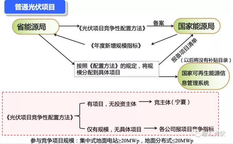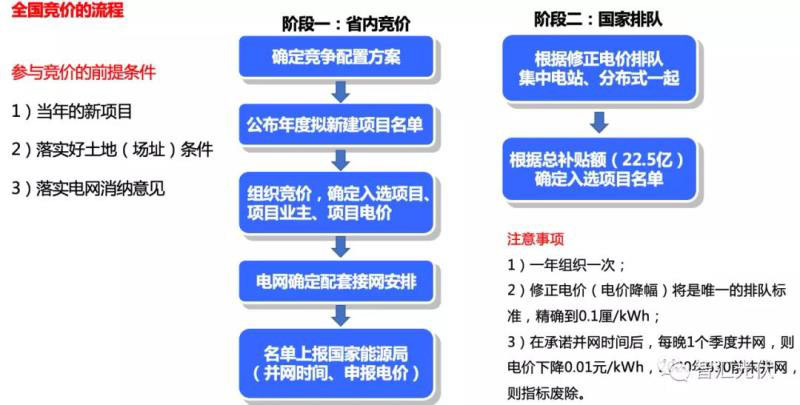 在該管理框架下,光伏項目要想獲得補貼資格,需要經(jīng)過省內(nèi)篩選之后,參與全國性競價,具體流程如下圖所示。