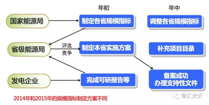 2014年,分布式和地面電站指標分開管理;由于發(fā)展的不均衡性,導致分布式指標大量剩余而地面電站指標不夠用。