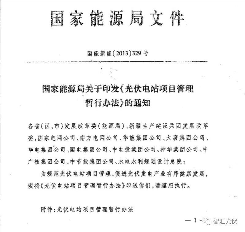2013年8月29日,國家能源局關于印發(fā)《光伏電站項目管理暫行辦法》的通知出臺,于2014年開始實施。