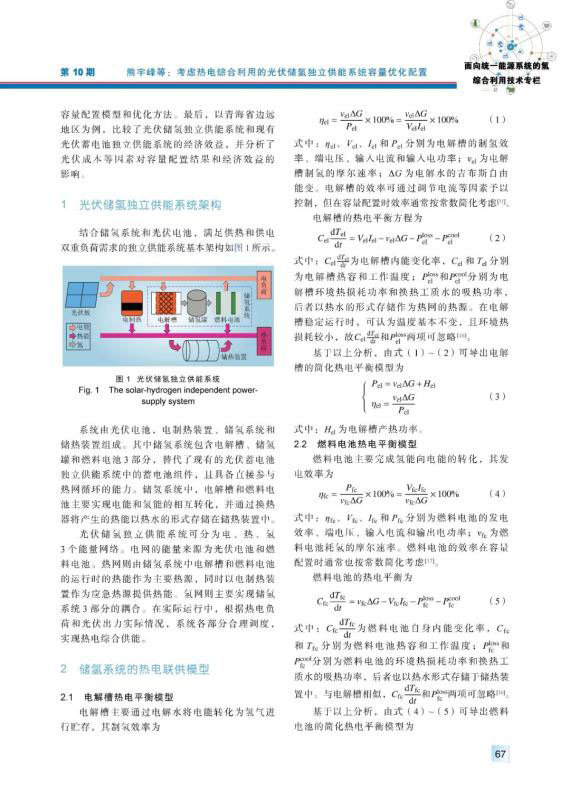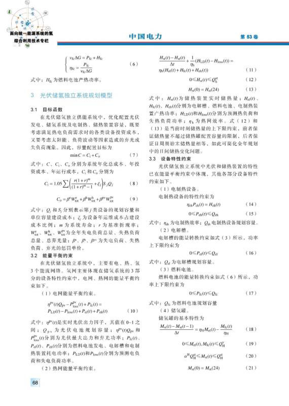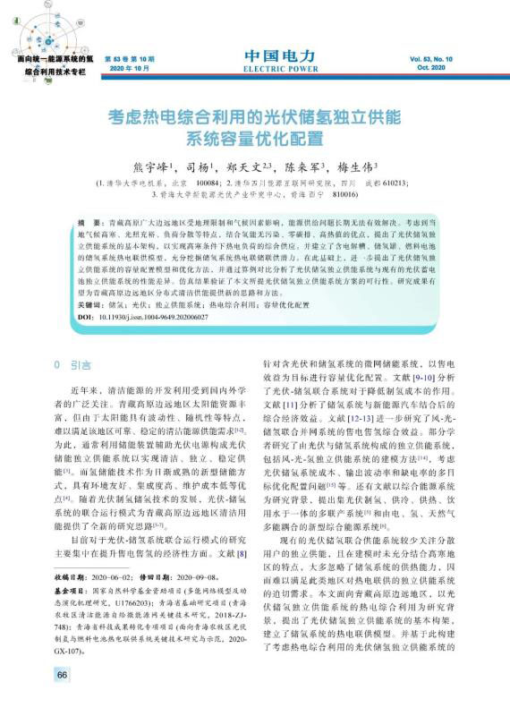 熊宇峰, 司楊, 鄭天文, 等. 考慮熱電綜合利用的光伏儲氫獨(dú)立供能系統(tǒng)容量優(yōu)化配置[J]. 中國電力, 2020, 53(10): 66-73.