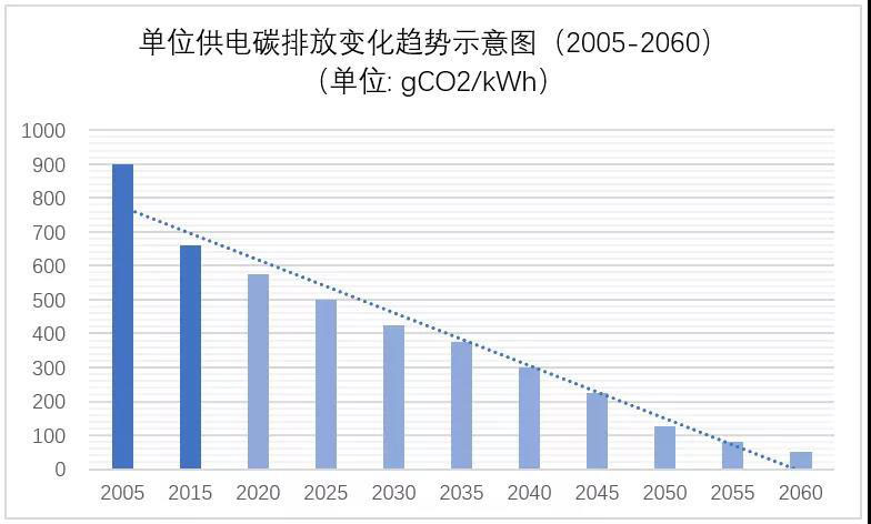 中國(guó)如果在2060年實(shí)現(xiàn)碳中和目標(biāo),電力行業(yè)單位供電碳排放要從目前的600克左右,至少以每10年平均100克左右(即每年10克左右)的速度往下降,才能確保2060年左右達(dá)到目前近零排放國(guó)家的水平(如瑞典、法國(guó)等)。