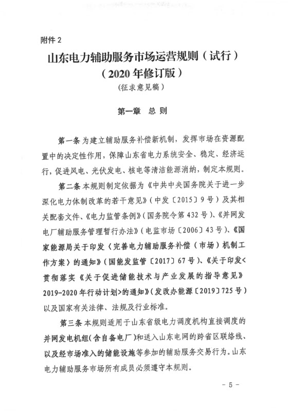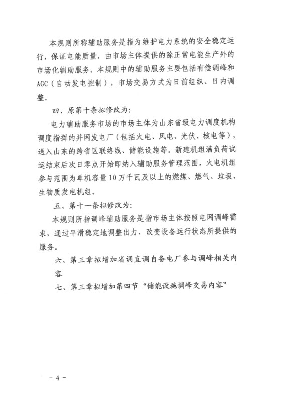 今日,國(guó)家能源局山東能監(jiān)局發(fā)布《山東電力輔助服務(wù)市場(chǎng)運(yùn)營(yíng)規(guī)則(試行)(2020年修訂版)》(征求意見(jiàn)稿),意見(jiàn)稿指出,在發(fā)電機(jī)組相關(guān)定義中新增儲(chǔ)能設(shè)施、并新增儲(chǔ)能設(shè)施調(diào)峰交易章節(jié)內(nèi)容,其中指出規(guī)模在5MW/10MWh及以上獨(dú)立儲(chǔ)能設(shè)施、集中式新能源場(chǎng)站配套儲(chǔ)能設(shè)施等均可參與。