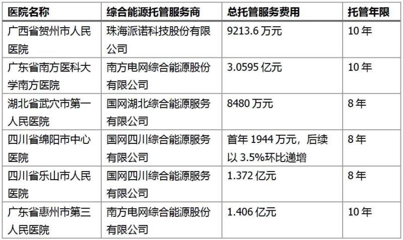 在醫(yī)院這一細分市場,由醫(yī)院委托能源托管服務公司對能源系統(tǒng)進行投資、設計、建設、改造和運行管理,并按照合同約定支付能源托管費用。這種綜合能源托管服務模式較為常見,并已在多個項目中獲得成功實踐。