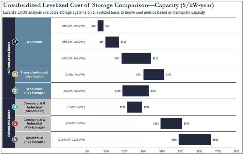 美國時間10月19日,Lazard發(fā)布其年度深度研究報告——Levelized Cost of Storage Analysis, Version 6.0 (LCOS 6.0),比較了不同應(yīng)用場景下儲能技術(shù)的成本。