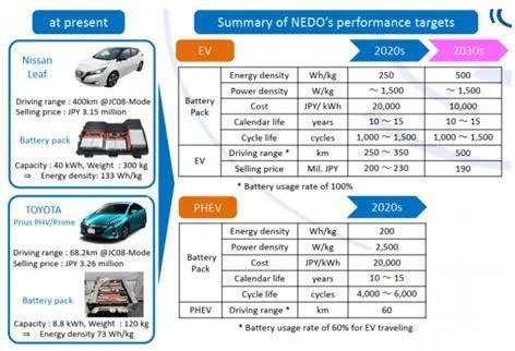 圖10. 日本NEDO的2020年和2030年電池性能目標(biāo)