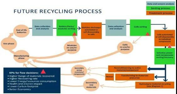 圖8. 未來的電池回收過程:直接回收與再利用過程有機的整合