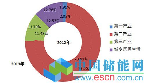 圖1 2012、2013年電力消費結(jié)構(gòu)圖