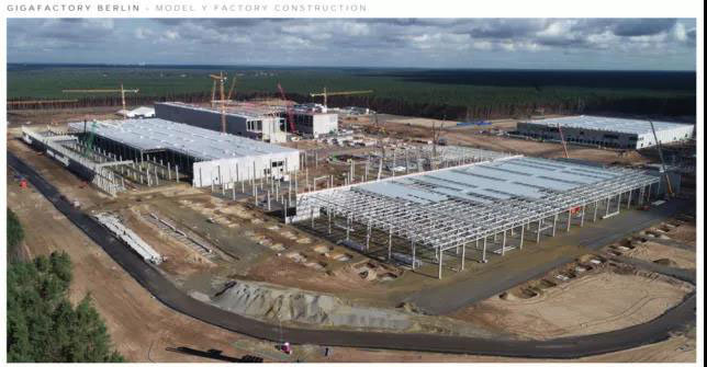 (特斯拉德國(guó)工廠,已經(jīng)有4棟建筑封頂)