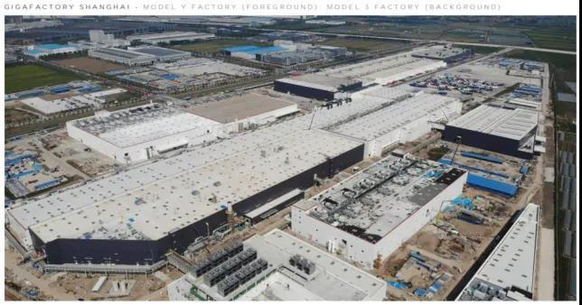 (特斯拉上海工廠,后方Model 3生產(chǎn)線,前方Model Y生產(chǎn)線)