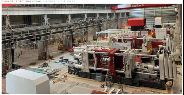 (特斯拉上海工廠的“一體壓鑄機(jī)”,將車身后部原本需要幾十個(gè)零件構(gòu)成,減少至一個(gè)壓鑄件即可)