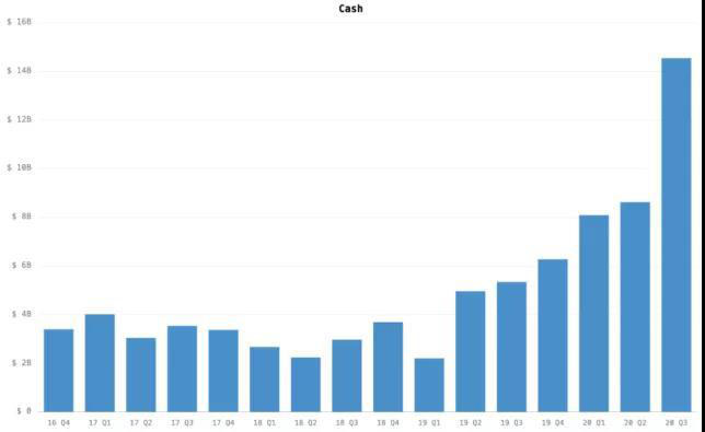 現(xiàn)金及現(xiàn)金等價(jià)位為145.31億美元,環(huán)比增長(zhǎng)69%,同比增長(zhǎng)172%;