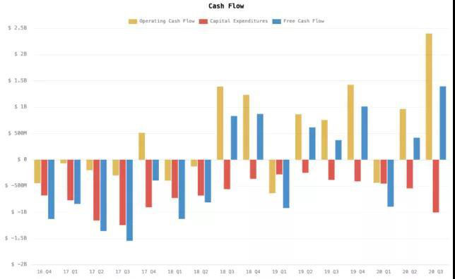 自由現(xiàn)金流為13.95億美元,環(huán)比增長(zhǎng)234%,同比增長(zhǎng)276%;