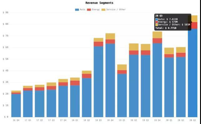 盡管特斯拉的營(yíng)收中有多個(gè)來(lái)源,但是汽車仍是主要部分,總共87.71億美元的營(yíng)收中,汽車業(yè)務(wù)就貢獻(xiàn)了76.11億美元,而能源業(yè)務(wù)、服務(wù)(其他)分別貢獻(xiàn)了5.79億美元和5.81億美元。