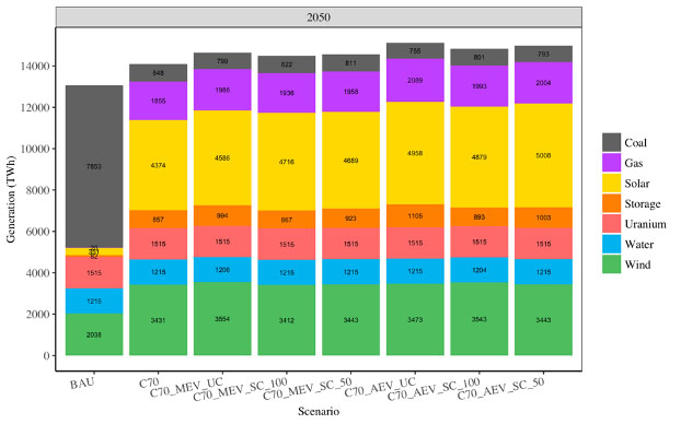 圖3. 2050年電力系統(tǒng)累計(jì)發(fā)電量情況