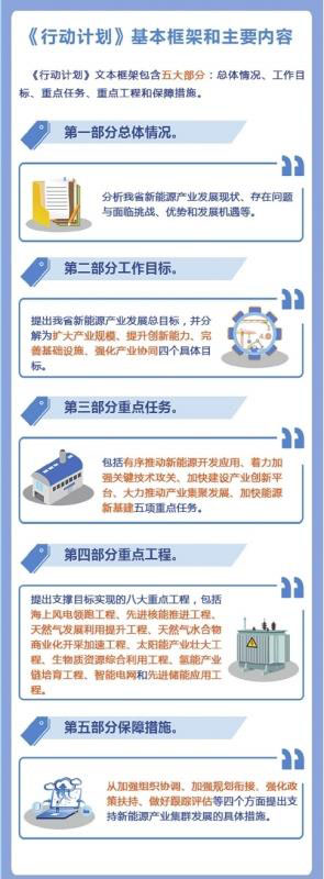 《行動計劃》是廣東省20個戰(zhàn)略性支柱產(chǎn)業(yè)集群和新興產(chǎn)業(yè)集群行動計劃中的其中一個?!缎袆佑媱潯匪傅男履茉串a(chǎn)業(yè)主要包括核能、風能、天然氣及其水合物、太陽能、氫能、生物質(zhì)能、地熱能、海洋能、智能電網(wǎng)、儲能等領(lǐng)域。《行動計劃》內(nèi)容涵蓋了總體情況、工作目標、重點任務(wù)、重點工程和保障措施五個部分。