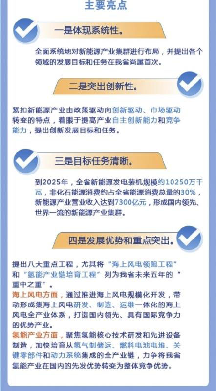《行動計劃》針對廣東有優(yōu)勢、有基礎(chǔ)、有潛力的領(lǐng)域提出八大重點工程。廣東發(fā)改委更將“海上風電領(lǐng)跑工程”和“氫能產(chǎn)業(yè)鏈培育工程”列為未來五年新能源發(fā)展的“重中之重”,力爭通過帶動形成集海上風電研發(fā)、制造、運維一體化的海上風電全產(chǎn)業(yè)體系,培育從氫氣制儲運、燃料電池電堆、關(guān)鍵零部件和動力系統(tǒng)集成的全產(chǎn)業(yè)鏈,打造國內(nèi)領(lǐng)先的海上風電及氫能優(yōu)勢產(chǎn)業(yè)?!缎袆佑媱潯返膶嵤欣趶V東發(fā)揮資源、市場、人才等優(yōu)勢,推動新能源關(guān)鍵技術(shù)的發(fā)展,進一步鞏固技術(shù)先發(fā)優(yōu)勢。