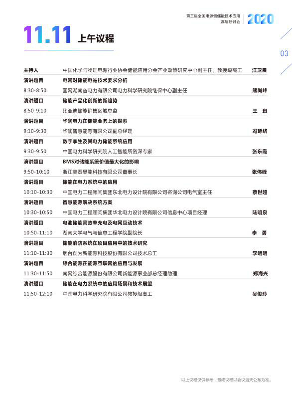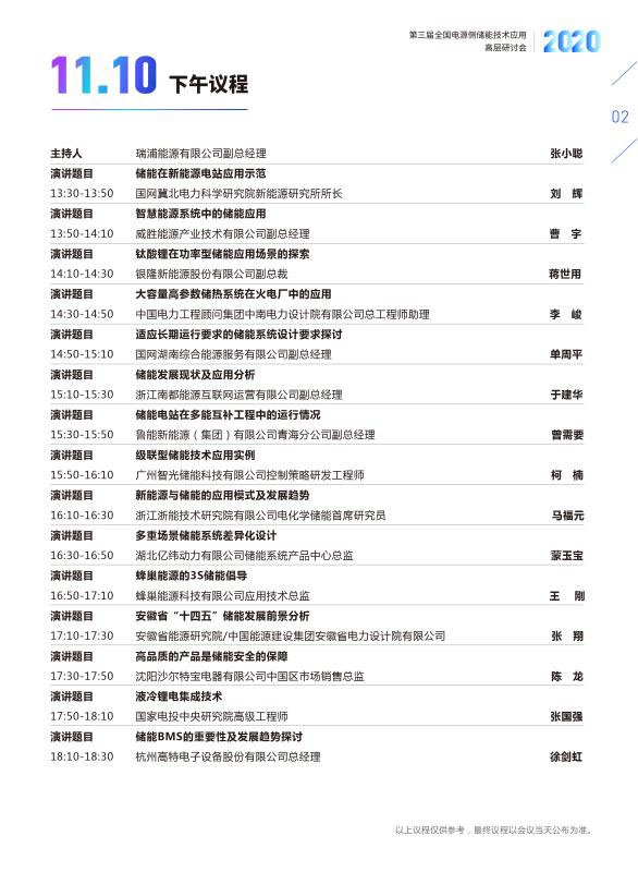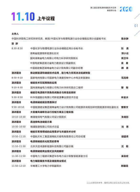 本次高層研討會以“引領(lǐng)電源側(cè)儲能工程應(yīng)用 推進儲能產(chǎn)業(yè)高質(zhì)量發(fā)展”為主題,將邀請儲能領(lǐng)域?qū)<覍W(xué)者、政府主管部門領(lǐng)導(dǎo)、新能源業(yè)主單位、發(fā)電集團、設(shè)計院、電網(wǎng)公司、系統(tǒng)集成商以及投融資機構(gòu)企業(yè)負責人及相關(guān)產(chǎn)業(yè)代表等共同參與探討和交流。以下為主要議程: