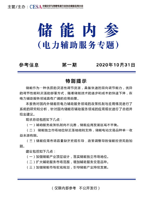 中國儲能網(wǎng)訊:由中國化學(xué)與物理電源行業(yè)協(xié)會儲能應(yīng)用分會主管/主辦,產(chǎn)業(yè)政策研究中心專家組編寫的《儲能內(nèi)參》即將與業(yè)內(nèi)同仁見面。
