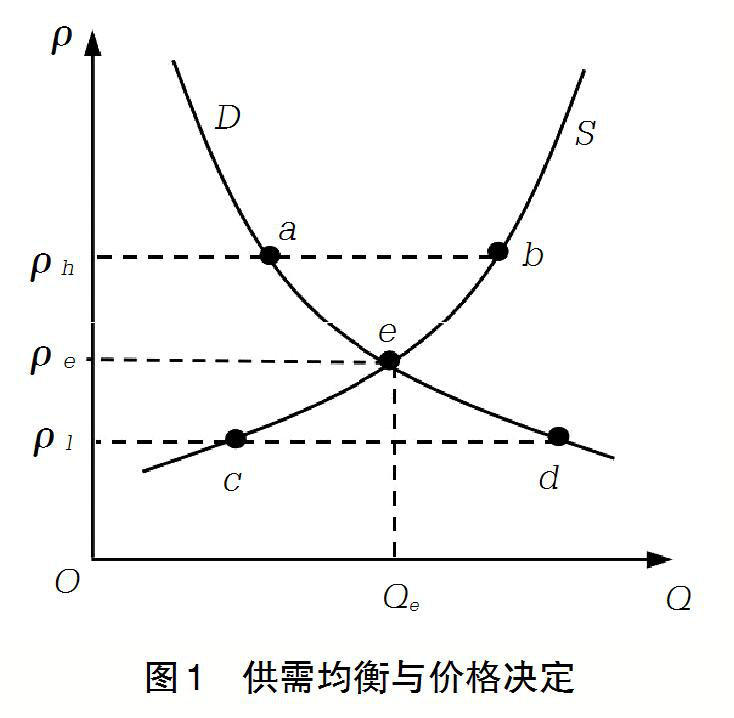 此外,在現(xiàn)貨環(huán)境下的發(fā)電成本補(bǔ)償、阻塞費(fèi)用等等,也會(huì)帶來不平衡資金問題。以上種種不平衡資金問題產(chǎn)生的機(jī)理是不一樣的,但總體來說都是供方和需方電價(jià)或電量的差異所導(dǎo)致的。我們通常采用微觀經(jīng)濟(jì)學(xué)中經(jīng)典的供給與需求分析來說明市場(chǎng)機(jī)制及市場(chǎng)價(jià)格的決定。在圖1中,假定決定供求的因素除商品自身的價(jià)格外其余均為已知,因而供求狀況確定。圖中曲線S表示供給曲線,曲線D表示需求曲線。由圖可見,曲線S和D在e點(diǎn)相交,與e點(diǎn)相對(duì)應(yīng)的價(jià)格pe就是均衡價(jià)格,或者叫市場(chǎng)出清價(jià)格。在此價(jià)格水平上,買方愿意并能夠購(gòu)買的數(shù)量與賣方愿意并能夠供給的數(shù)量恰好相等,此時(shí)不會(huì)產(chǎn)生任何不平衡資金。所謂市場(chǎng)機(jī)制就是指在一個(gè)自由市場(chǎng)里能使價(jià)格得以變化一直達(dá)到出清(即供給量與需求量相等)的趨勢(shì)。但實(shí)際電力市場(chǎng)遠(yuǎn)比這更加復(fù)雜,這就導(dǎo)致不平衡資金問題的出現(xiàn)。處于現(xiàn)貨市場(chǎng)連續(xù)結(jié)算試運(yùn)行階段的山東電力市場(chǎng)的不平衡資金的構(gòu)成是復(fù)雜的,除現(xiàn)貨所帶來的固有的不平衡資金問題外,發(fā)用電計(jì)劃放開不同步,即優(yōu)先發(fā)電電量與優(yōu)先購(gòu)電電量不匹配應(yīng)屬主要原因。而東北區(qū)域電力市場(chǎng)不平衡資金問題的成因主要是市場(chǎng)化的發(fā)電上網(wǎng)電價(jià)和固定的銷售電價(jià)的價(jià)差所導(dǎo)致的。中長(zhǎng)期交易偏差考核所產(chǎn)生的產(chǎn)生不平衡資金則是人為設(shè)置偏差考核標(biāo)準(zhǔn)、收支沒有閉環(huán)所致。