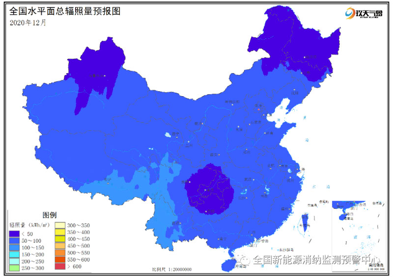附圖6 全國2020年12月水平面總輻照量預(yù)報圖