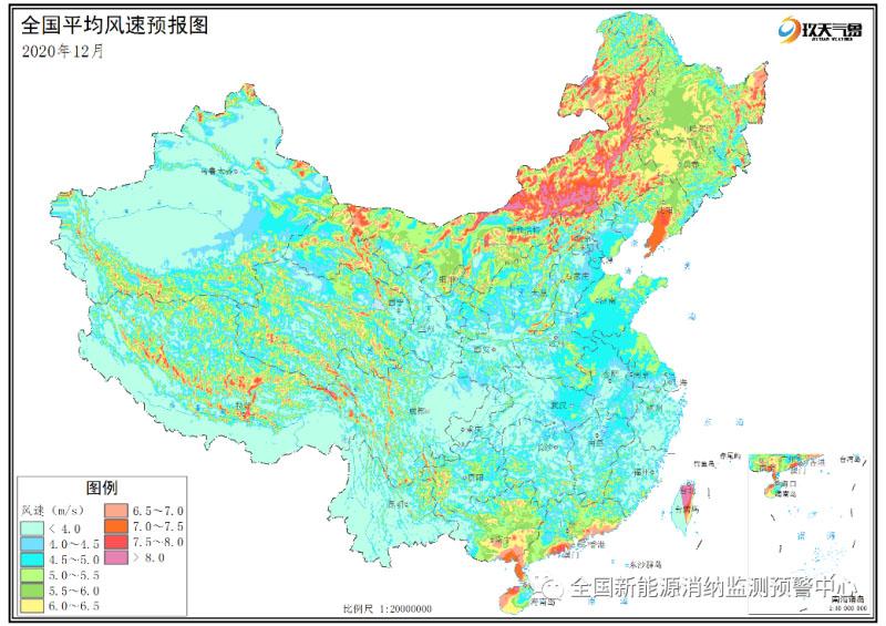 附圖5 全國2020年12月平均風(fēng)速分布預(yù)報圖