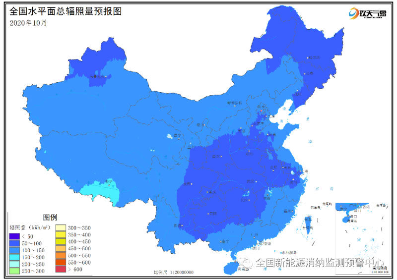 附圖2 全國2020年10月水平面總輻照量預(yù)報圖