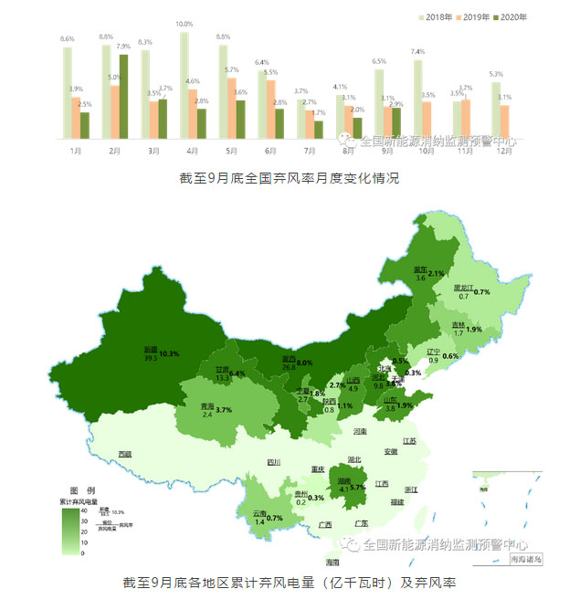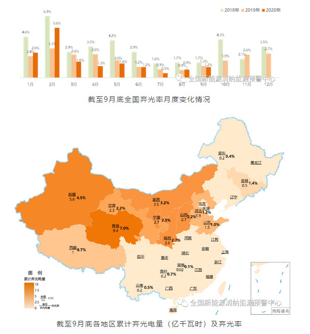 風(fēng)電和光伏發(fā)電利用率同比分別提升0.8和0.1個百分點,至97.8%和99.1%。三季度全國棄風(fēng)、棄光電量分別為21.2和6.5億千瓦時。