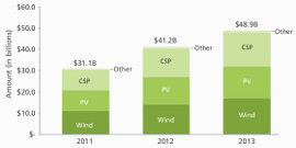 “美國(guó)可再生能源融資:2010-2013年概況及未來展望”預(yù)計(jì):到2013年,美國(guó)公用事業(yè)規(guī)模的太陽(yáng)能光伏發(fā)電和聚光太陽(yáng)能發(fā)電項(xiàng)目將達(dá)22吉瓦,項(xiàng)目融資需求達(dá)766億美元,但在太陽(yáng)能光伏和聚光太陽(yáng)能發(fā)電兩個(gè)項(xiàng)目中,實(shí)際上將只有15.7吉瓦能夠獲得總共540億美元的融資。
