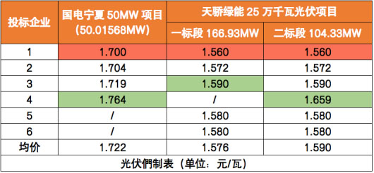 實(shí)際上,這已經(jīng)是該項(xiàng)目的二次招標(biāo),9月24日該項(xiàng)目第一次開(kāi)標(biāo),組件最低報(bào)價(jià)為1.56元/瓦,最高報(bào)價(jià)為1.659元/瓦,平均價(jià)格1.6元/瓦以下,交貨周期與此次一致。但很明顯的可以看出,此次開(kāi)標(biāo)價(jià)格無(wú)論是最高價(jià)還是均價(jià)都出現(xiàn)了大幅度的上漲。
