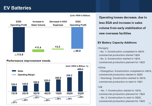 重要的是,SK Innovation也在生產(chǎn)電動車電池材料,這部分的盈利已經(jīng)有一段時間了:雖然第三季度的營業(yè)利潤下降到299億韓元(2640萬美元)。